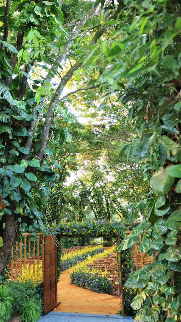 A área externa do Espaço Conceito revela-se um verdadeiro refúgio, com paisagens verdes e cativantes, ideais para cerimônias ao ar livre. O local oferece ainda uma variedade de configurações versáteis para cerimônias e recepções, como o encantador Jardim de Renda, a imponente Via das Palmeiras e o sereno Recanto do Chorão.